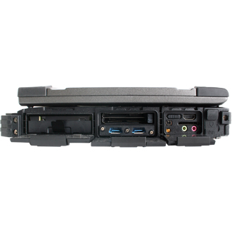 IO Interface | Serial port (9-pin; D-sub) x 2 External VGA (15-pin; D-sub) x 1 Microphone (Mini-jack) x 1 Audio output (Mini-jack) x 1 DC in Jack x 1 USB 3.0 (9-pin) x 1 USB 3.0 / eSATA Combo x 2 Modem (RJ11) x 1 LAN (RJ45) x 1 IEEE 1394a x 1 HDMI x 1 External GPS antenna port (only with optional GPS) x 1 Docking connector (80-pin) x 1 Optional RF antenna pass-through for WLAN and WWAN |